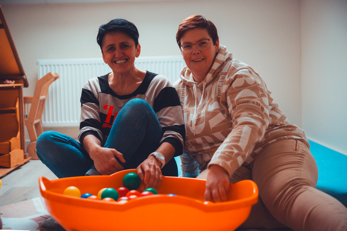 Den „Mini-Mützen“ steht der komplette 1. Stock des Mütterzentrums zur Verfügung. Im großen Spielzimmer steht ein großer Tisch zum Spielen, Malen oder Basteln. Es gibt z.B. eine Puppenküche und eine Autoecke, sowie andere wechselnde Angebote. Im Bewegungszimmer nebenan haben wir Matten, Kletterspielzeug und viel Platz.