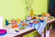 Die Mütter können beim gemütlichen Plausch das Frühstück in Ruhe genießen... Es gibt frische Brötchen, Wurst, Käse, Nutella, gekochte Eier, Obst, Gemüse und andere Raffinessen!